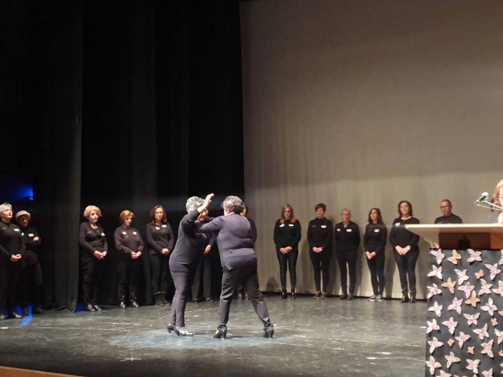 Tras la lectura colectiva se ha proyectado el vídeo “Basta ya” contra la violencia de género en el que han participado diferentes colectivos de nuestro municipio. Video que ha sido editado por María Viñas, fotograba y diseñadora del cartel de la campaña de este 25 de noviembre. Y finalmente se ha cerrado el acto con la actuación “Liberación” a cargo de las bailarinas Geraldine Chan, Ivonne Guarniz y el bailarín Eduardo Martínez, que representarán una situación de violencia en una familia, aparentemente feliz.